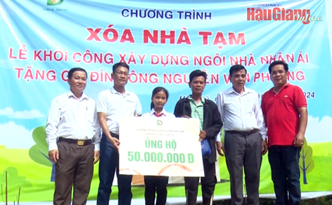 (HG) - Vừa qua, đại diện Báo Dân Trí khu vực đồng bằng sông Cửu Long kết hợp UBND xã Hòa Mỹ, huyện Phụng Hiệp, khởi công xây dựng nhà nhân ái tặng gia đình ông Nguyễn Văn Phương, 52 tuổi, ngụ ấp Mỹ Phú A, xã Hòa Mỹ. Ông Phương thuộc diện hộ nghèo của xã, một mình nuôi con, sống trong căn nhà dột nát.