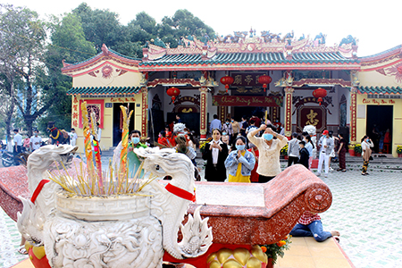 (HGO) – Ngày 12 - 2, nhằm mùng 1 Tết Tân Sửu 2021, nhiều chùa trên địa bàn thành phố Vị Thanh như: Quốc Thanh, Bảo Tịnh, Phổ Minh, Tịnh xá Ngọc Chương, Quan Đế Miếu... người dân tấp nập đi chùa cầu an, cầu may.